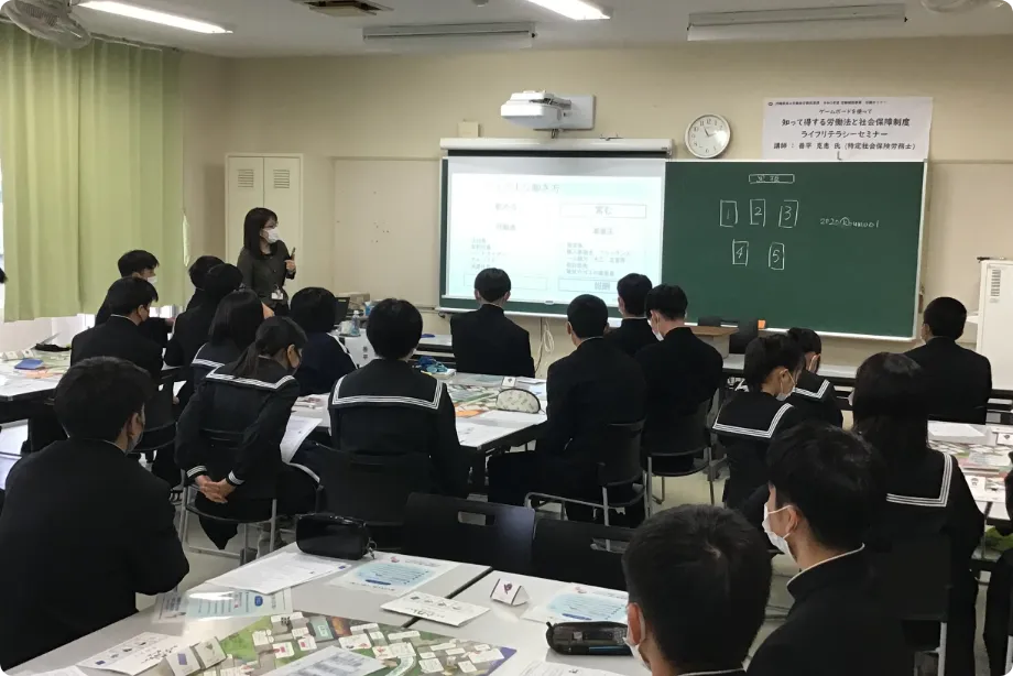 学生(高校生・短大生・専門学校生・大学生)を対象に、アルバイトや就職するにあたり知っておくべき労働法の基礎知識を身につけるセミナーを県内各地で行っています。